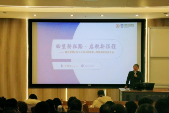 1月22日,商务外语学院顺利召开了2025-2026学年度第一学期工作总结会议。会议全面回顾2025年度工作成果,表彰先进典型,并规划新学年发展蓝图。学院领导及全体教职工共同参会。